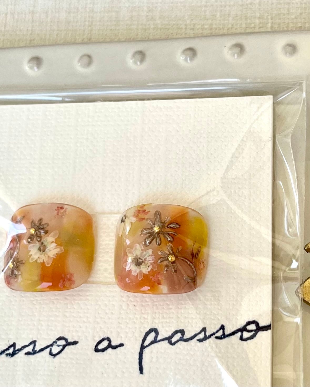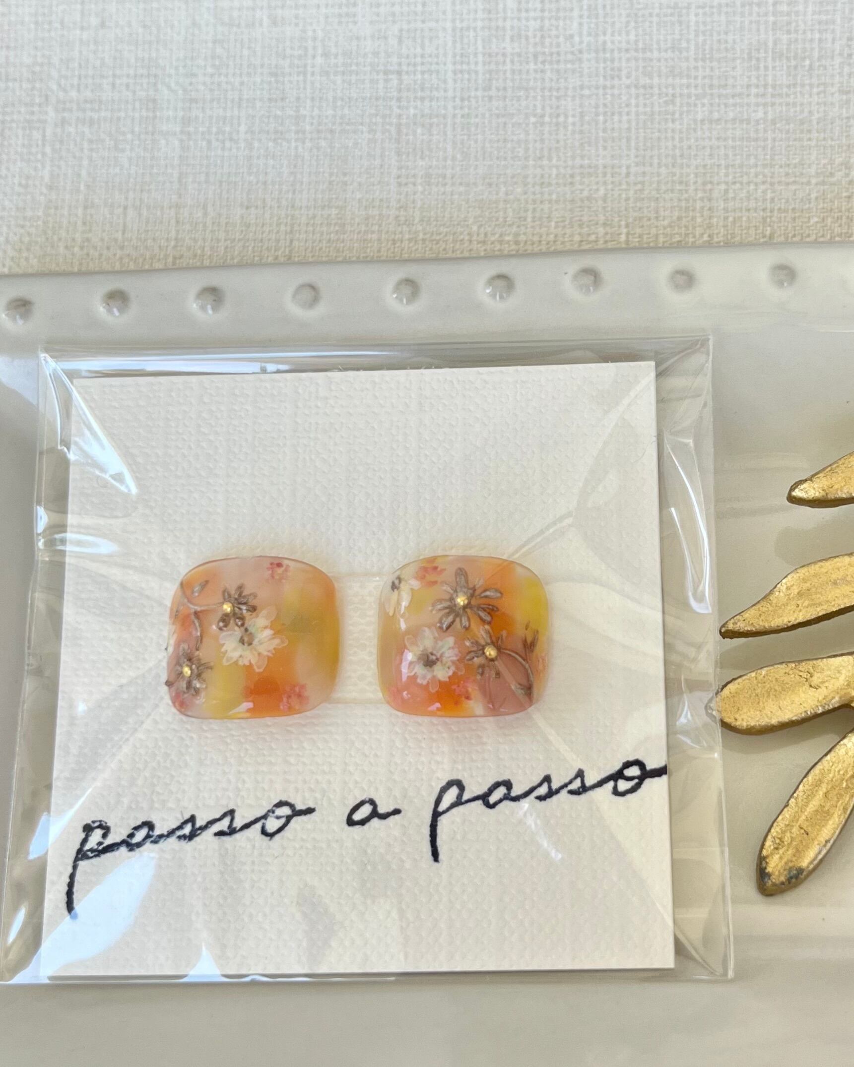 Sサイズ 夏だけどAutumnカラーでまとめた作品 繊細に描いた花柄とメタリックな花柄の融合